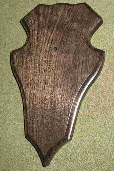 Die Form entspricht den klassischen Trophäenbrettern für das Gehörn, ist aber im Detail überarbeitet.